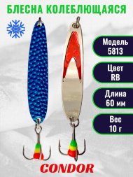 Блесна зимняя Condor 5813, вес 10,0 гр длина 60 мм цвет серебро красный галстук/прыщ синий RB